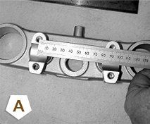 [D] — After removing the lower handlebar perches from the upper triple clamp, measure the distance from the center of the lower perch mounting hole to the center of the steering tube hole. D is not mandatory but very helpful in making sure.